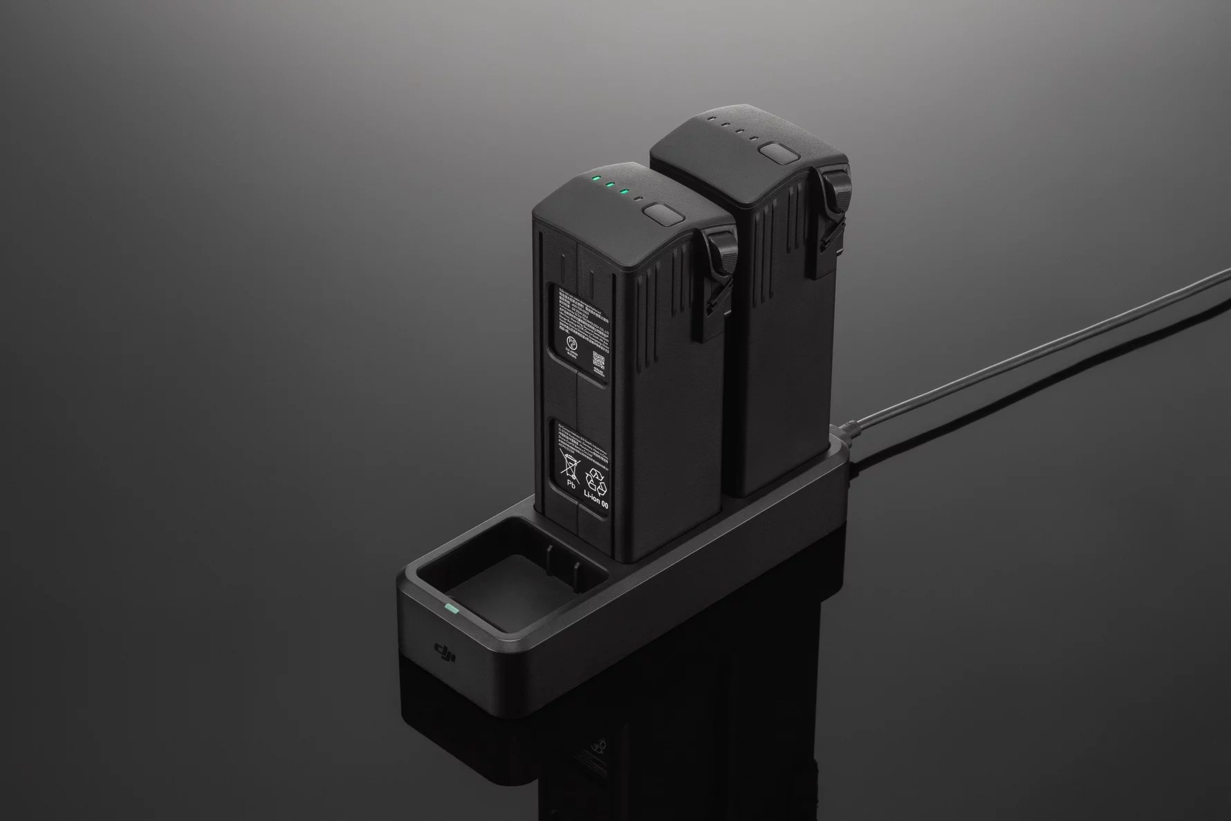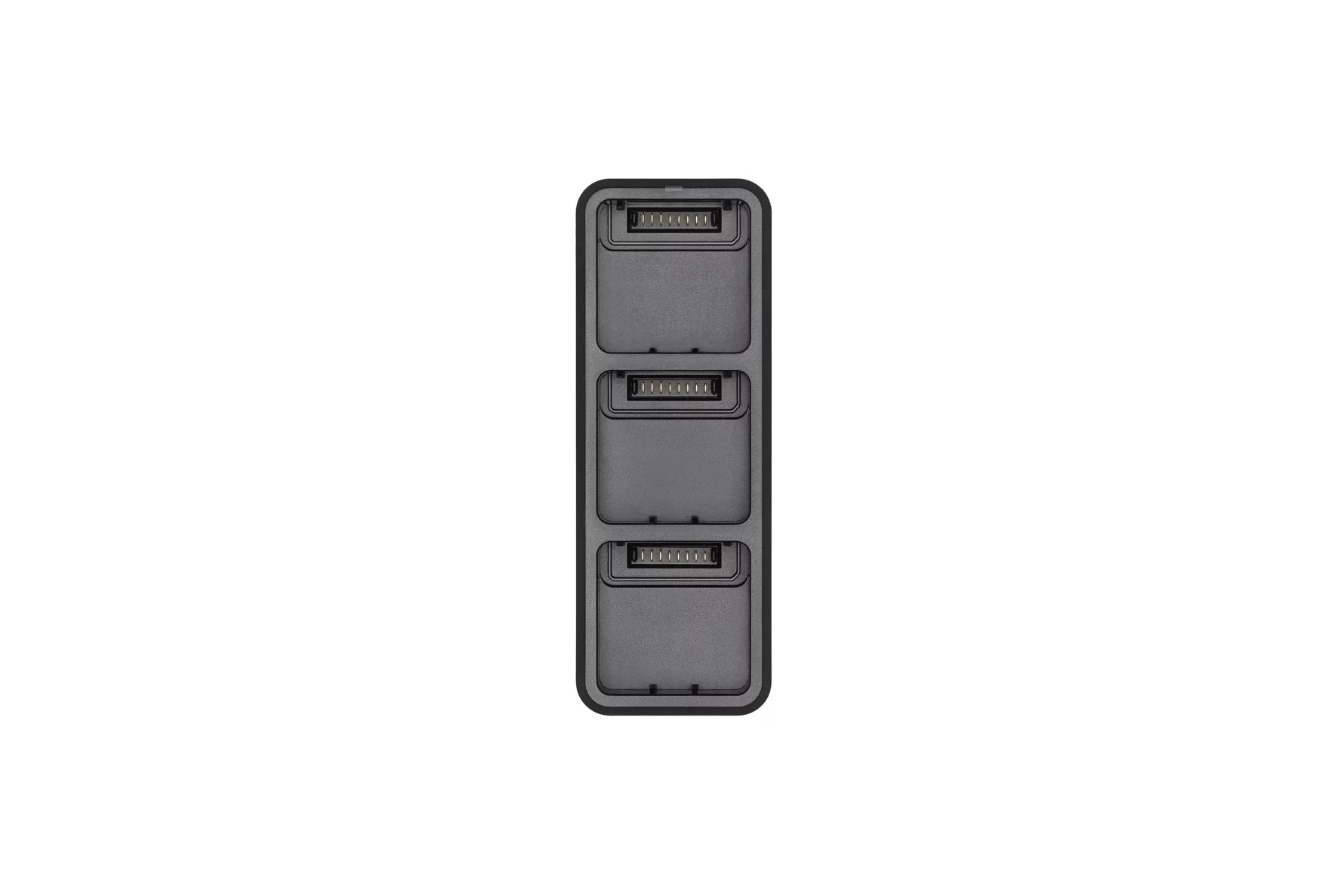 Egy 65 W-os hordozható töltőhöz vagy autós töltőhöz csatlakoztatva a DJI Mavic 3 akkumulátortöltő központ három akkumulátor töltésére alkalmas.